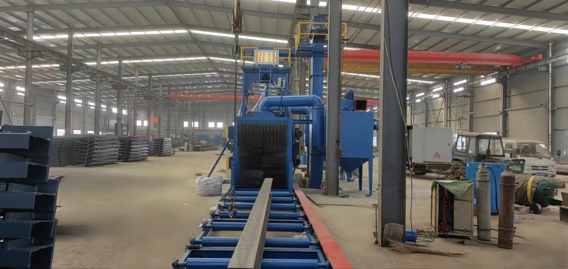 上图是宁夏银川Q1525通过式抛丸机现场!通过式抛丸机能连续不间断工作,对各类钢材料,如钢板,钢材,钢梁,型钢,钢管和铸钢件等以一种连续通过方式进行除氧化皮、清理和预处理。操作简便,只需将钢材料装载上机器,按下启动按钮,经过一个短时间的循环